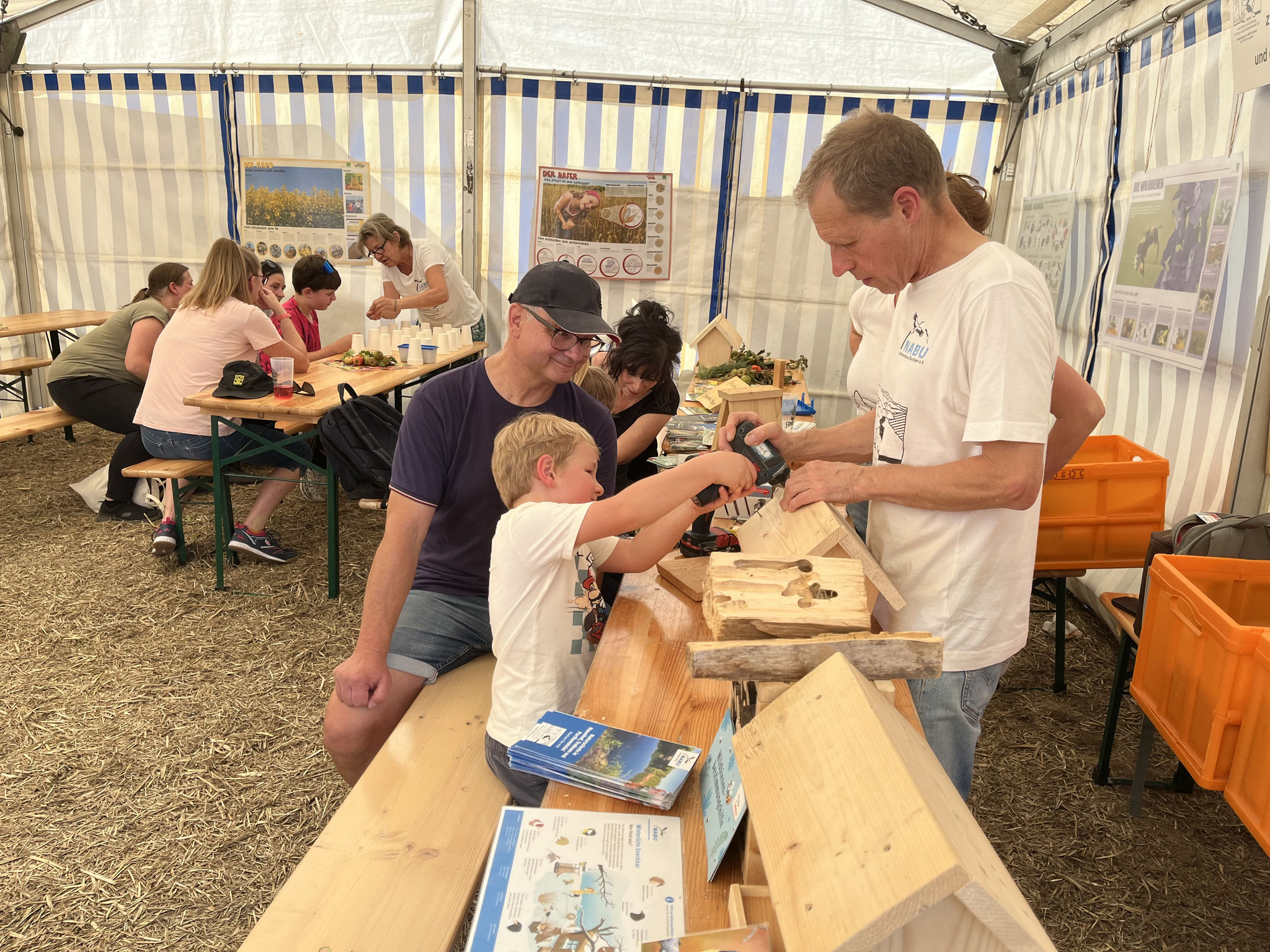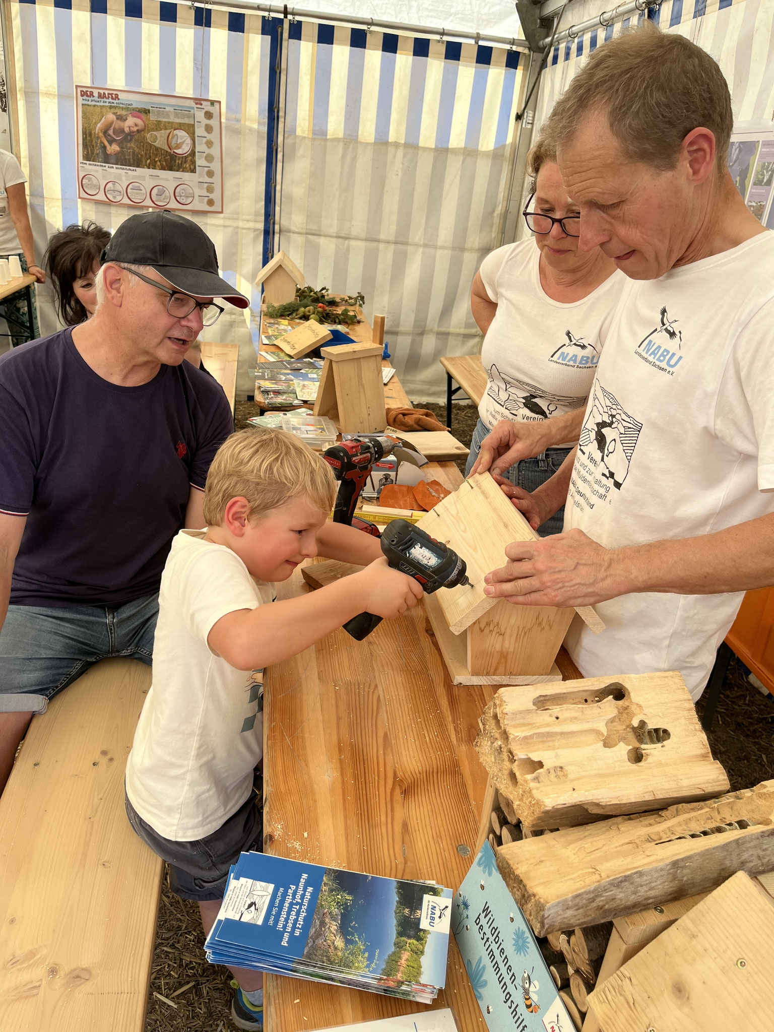 Auch zum Thema Insekten präsentierten wir Infomaterial und haben den Bau von Insektenhotels ermöglicht. Die Besucher, sowohl ganz junge als auch erfahrene ältere, waren sehr interessiert und eifrig am Bauen. Das wurde gut angenommen. Auch in den Gesprächen wurde deutlich, dass vielen Bürgern der Natur- und Umweltschutz am Herzen liegt.
